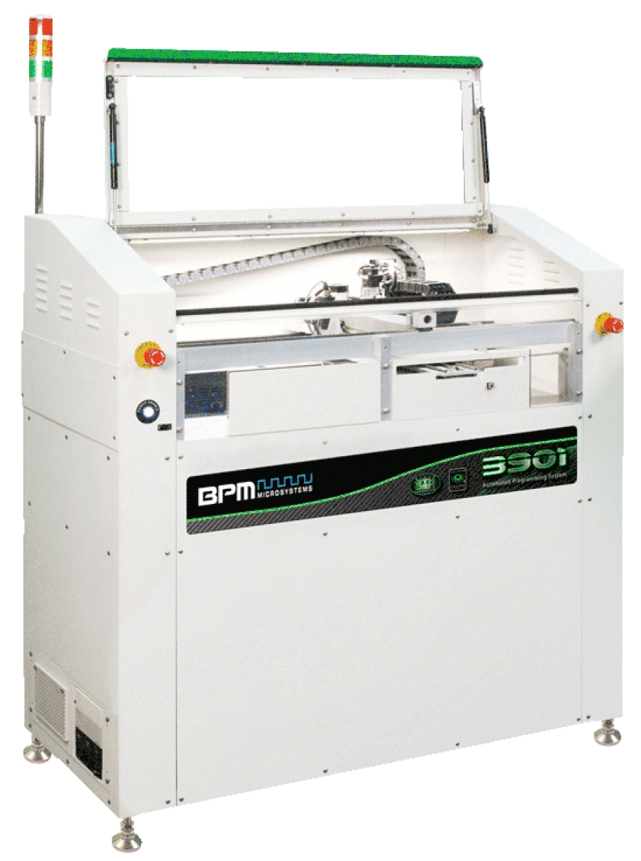 The 3901 is the feature-rich Automated Programming System offering precise vision alignment and true universal programming technology at the lowest cost of ownership. Based on BPM’s proven 3910, this highly flexible APS supports the full complement of input/output peripherals and is configurable with up to 16 sockets using 9th Gen programming site technology. By combining vision alignment for high quality and yield, industry best programming speeds with 9th Gen, plus fast job setup and changeover with BPWin process control software and award-winning WhisperTeach, the 3901 offers unmatched productivity at an unequaled value. The system boasts real production output of up to 1,088 devices per hour, while handling a broad range of packages, including CSP. The 3901 is offered in a variety of bundled configurations that allow it to support price-competitive markets, while providing features, versatility and reliability unavailable from cheaper systems. The 3901 truly delivers Extreme Value.